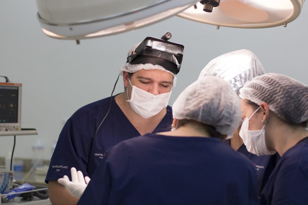 Foto: Procedimento operatório de transplante capilar.