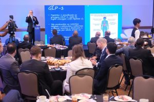 Iran Gonçalves, diretor médico da EMS, abriu as palestras e destacou sobre o impacto e o tratamento da diabetes e o avanço no atendimento das doenças. “A obesidade é uma doença crônica que afeta milhões de brasileiros e uma temática que exige atualizações e estudos para minimizarmos seu avanço, se quisermos ser uma sociedade com longevidade e verdadeira qualidade de vida”, alerta.