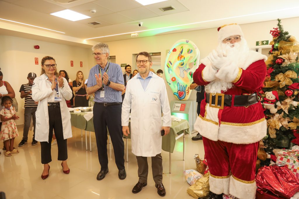 A magia do Natal tomou conta do Instituto de Otorrinolaringologia & Cirurgia de Cabeça e Pescoço (IOU), na Unicamp, na última quarta-feira (10/12), com a realização de uma festa especial dedicada às crianças atendidas pelo Instituto e a seus familiares. O momento mais aguardado da tarde foi a chegada do Papai Noel, que emocionou o público ao desembarcar em um caminhão do Corpo de Bombeiros, sob aplausos e muitos sorrisos.